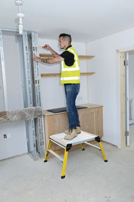 The Werner Odd Job 600 Fibreglass Work Platform features robust fibreglass legs that are non-conductive, ensuring enhanced safety when operating near live electricity sources. With a platform height of 0.5m, it provides a safe working height of 2.25m*. This work platform's compact and lightweight design enables convenient storage and easy transportation. This Werner fibreglass work platform features a large square platform, catering to the requirements of professionals who need a comfortable and spacious work surface for jobs on the site.